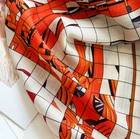 $ 26.4Pure Cashmere 200X100cm Square Scarf Women Neckerchief Wrap Orange tulip Print