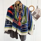 $ 26.4Pure Cashmere 200X100cm Square Scarf Women Neckerchief Wrap Blue branch Print