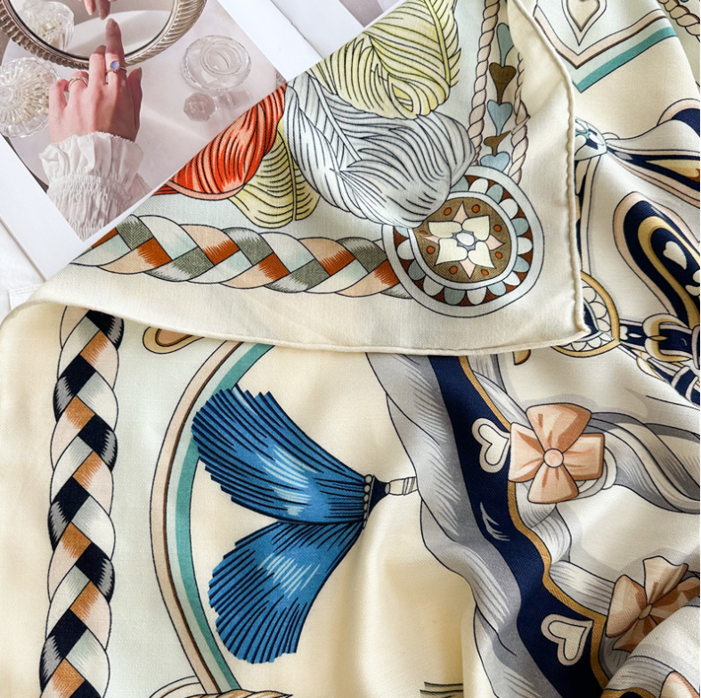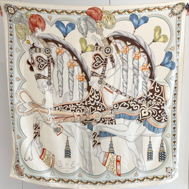 100% Silk Vintage Horse Carriage Scarf Bandana for Women 20 Inch