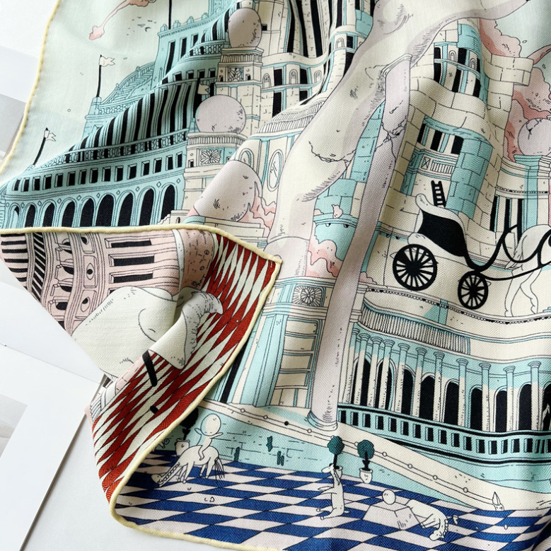$ 28.9170% Cashmere & 30% Silk Wrap Scarf Paris City Print Double Face Print Shawl 53"