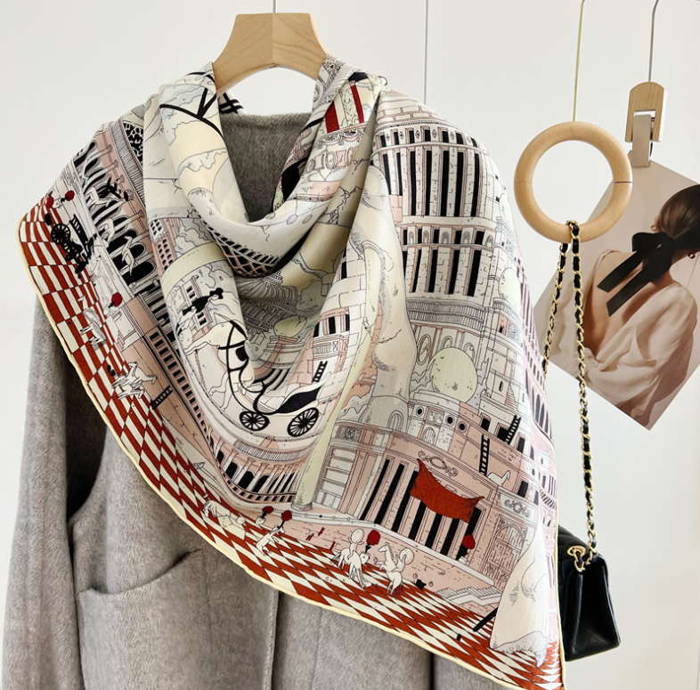 Pure 18 Momme Twill Silk Square Scarf 35" Pony Print Bandana Shawl Wrap