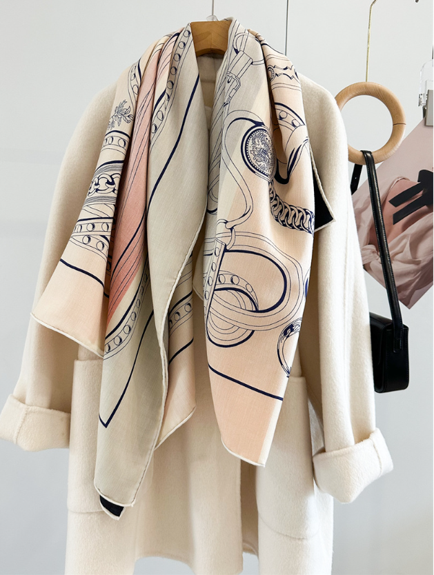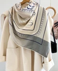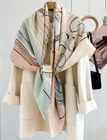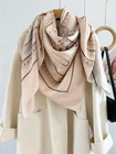 $ 30.9970% Cashmere 30% Silk Wrap Scarf warrior Print Double Face Shawl 135X135cm blue