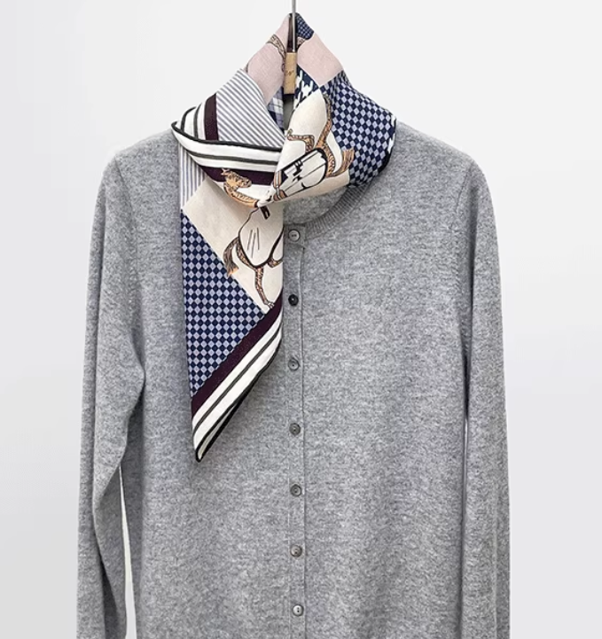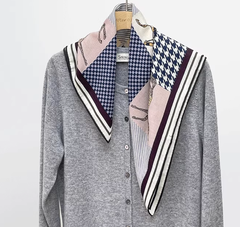 Versatile neckerchief print for adding some elegance and detail to a dark blouse or shirt. Quality jacquard twill with a great feel. Packaged well, great price, arrived quickly for overseas. Very good seller.