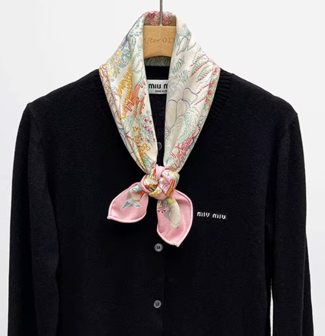 Cute easy-to-wear scarf that works in any weather. The twill weave is looser, so it breathes a bit more. Packaged well, arrived quickly. I like this seller.
