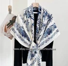 $ 6.18100% Mulberry Silk Square Scarf 53x53cm Blue & White Striped Bandana Wrap for Women