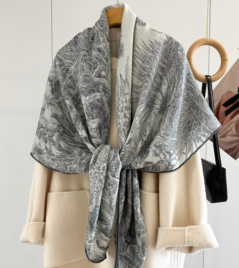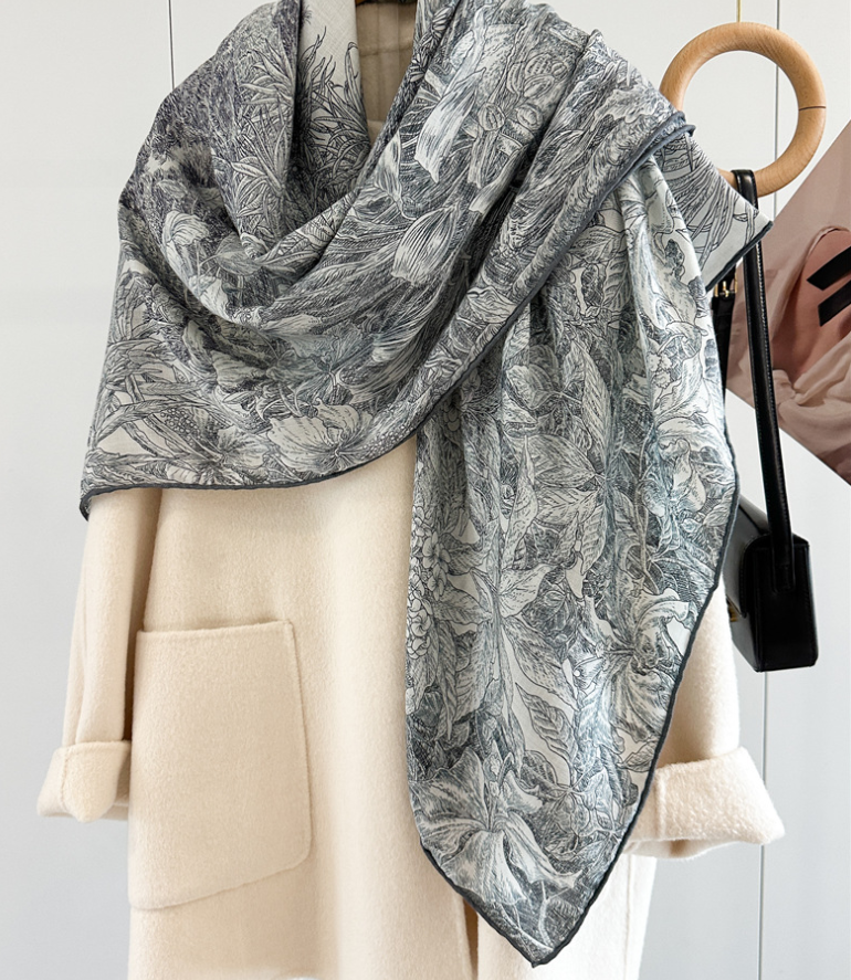 $ 31.422025 New Boutique 18 Momme Twill Silk Wrap Scarf Pytheas Printing Shawl 35'