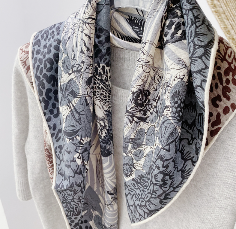 70% Cashmere 30% Silk Double Face Rainforest Print Wrap Scarf 27 Inches