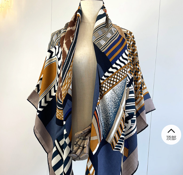 $ 41.570% cashmere 30% silk reversible equestrian print square shawl 130x130cm