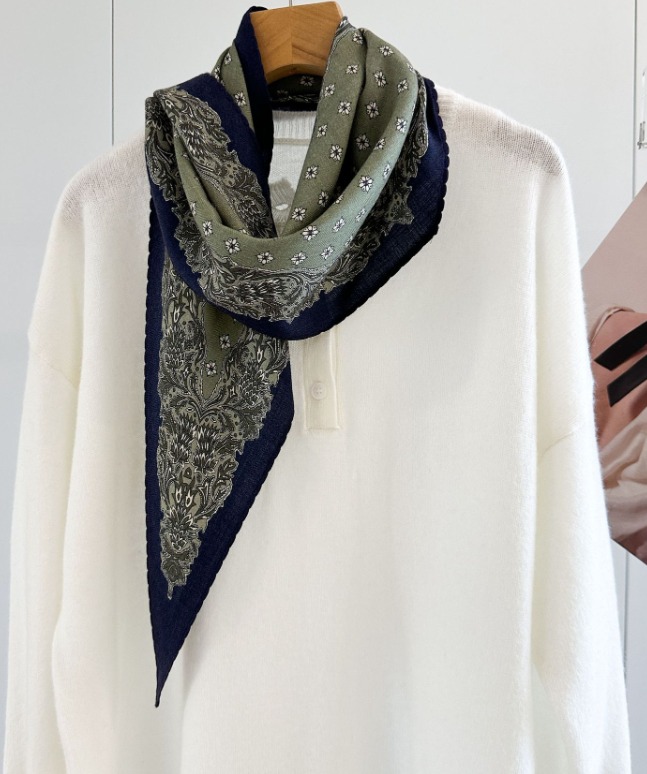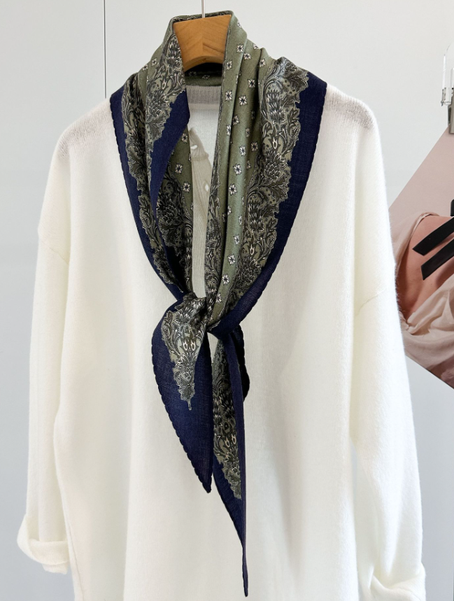 70% Cashmere 30% Silk Scarf 53'' Neckerchief wave Print Shawl Bandana Wrap new