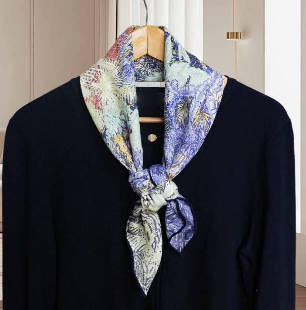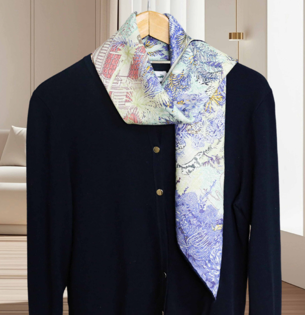 I love my gorgeous silk scarf which is more beautiful than the picture!! Exactly what I wanted and looks perfect with my sweater! I was amazed by how quickly it arrived— I got an excellent price on the scarf and on shipping, too! I will definitely keep this seller!! THANK YOU SO MUCH!!