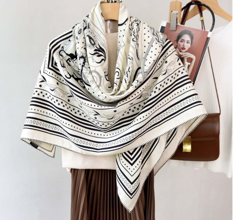 $ 31.68Tail Print 18 Momme Silk Wrap Scarf Bandana Shawl Double Face Kerchief 90X90cm