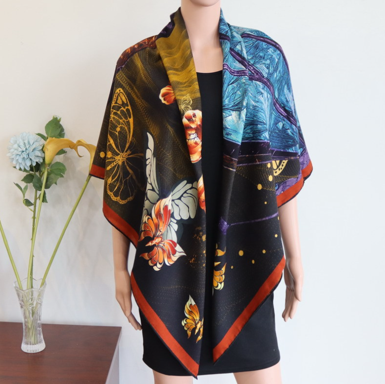 70% Cashmere 30% Silk Double-Sided Bandana Scarf with Totem Print 53 Inches