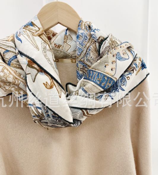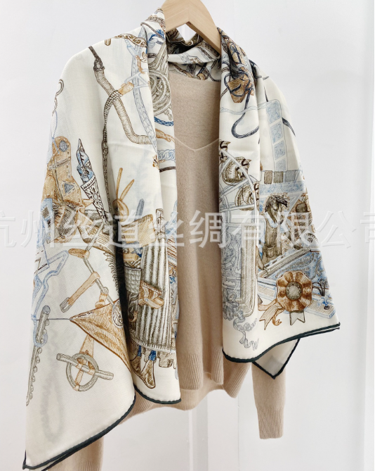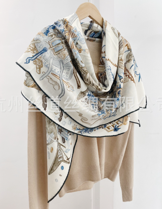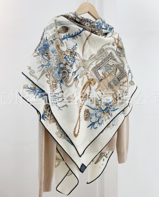 70% Cashmere 30% Silk Scarf Neckerchief Shawl Bandana 135X135cm wrap camel Print