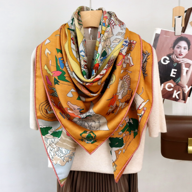 70% Cashmere 30% Silk Shawl 53'' Bandana Scarf Neckerchief soldier Print Wrap