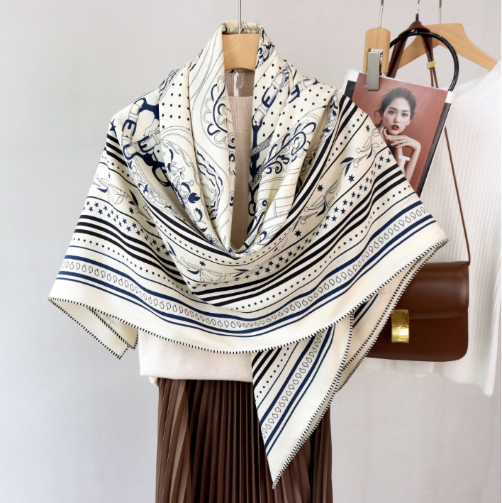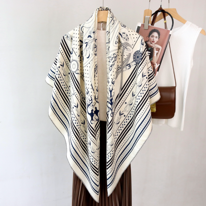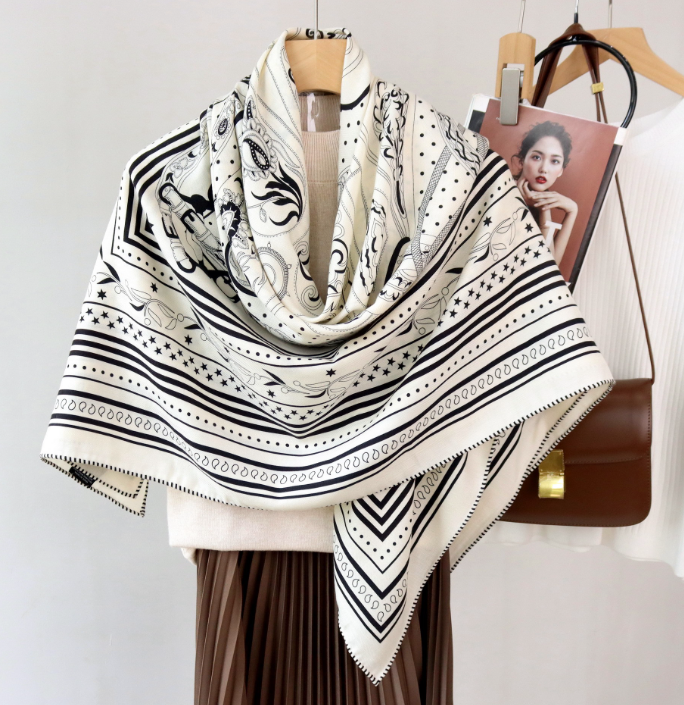 70% Cashmere 30% Silk Shawl Square 135X135cm Bandann horse Print Scarf wrap new