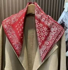 $ 8.5118 Momme Twill Silk Scarf 35'' Pink chain Print Shawl Square Neckerchief Wrap
