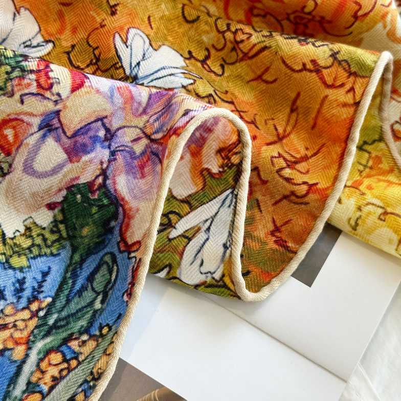 70% cashmere 30% silk Underwater World double side printed square Wrap shawl 53"