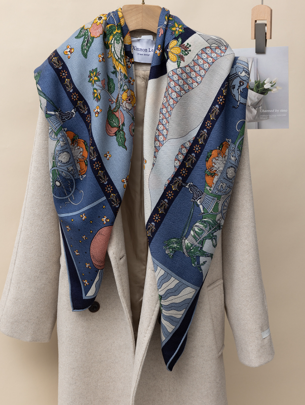 $ 33.2670% Cashmere & 30% Silk Wrap Scarf Shawl Sailor pattern Bandana Kerchief 51''