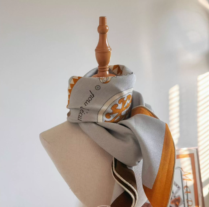 $ 36.9670% Cashmere 30% Silk Double-Faced Mirror Print Shawl Wrap 135x135cm