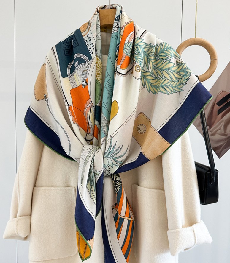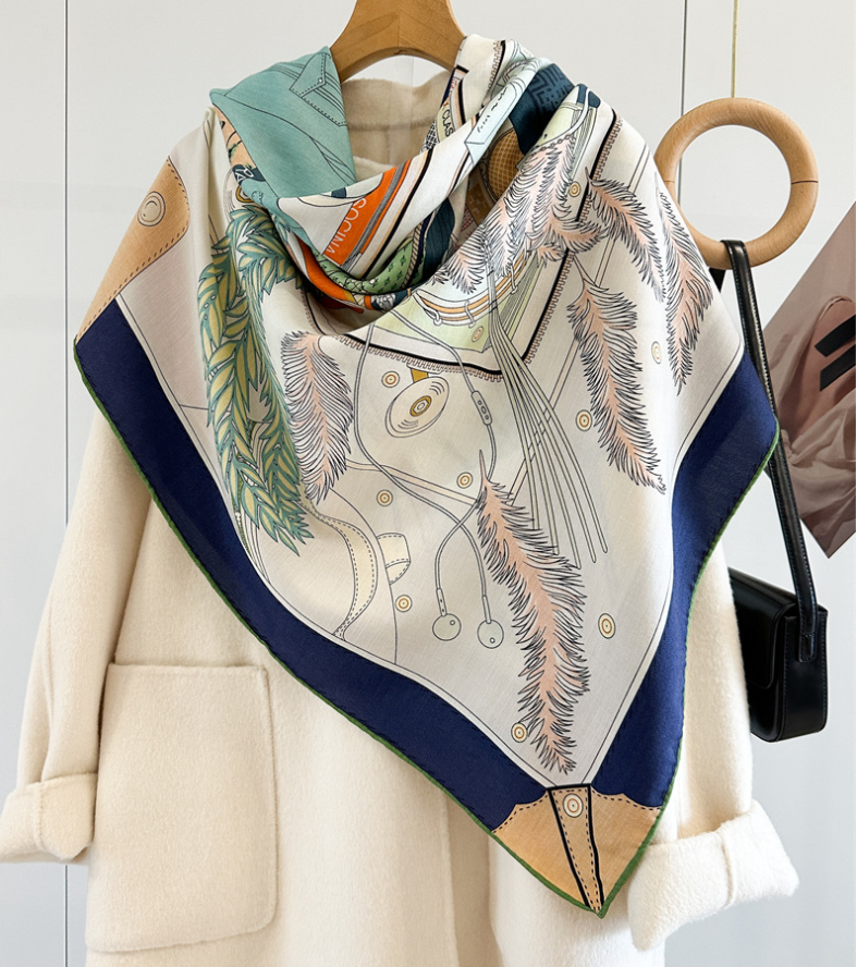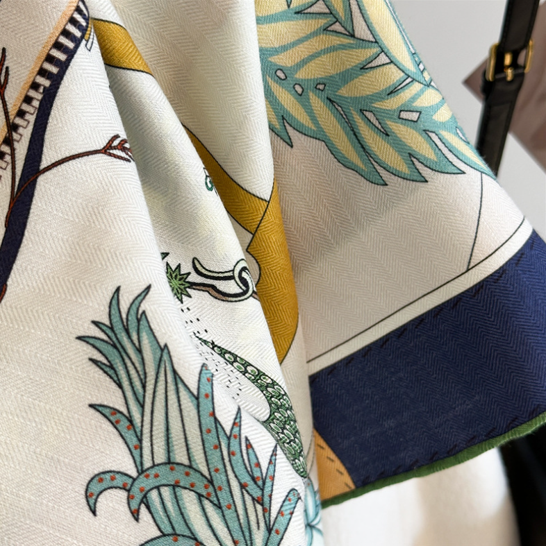 70% Cashmere 30% Silk Wrap Scarf white totem Print Double Face Print Shawl 53''