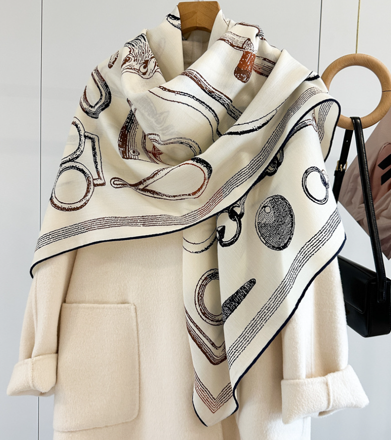 70% Cashmere 30% Silk Wrap Scarf Trojan Print Double Face Print Shawl 53'' new