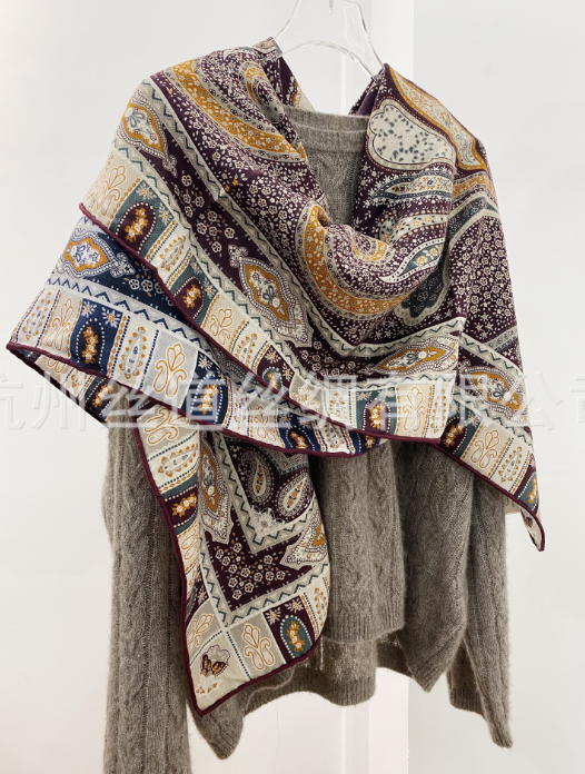 70% Cashmere 30% Silk Bandana wheel Print Kerchief Scarf Shawl 130X45cm wrap new