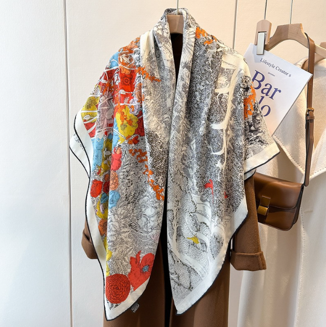 I love my gorgeous silk scarf which is more beautiful than the picture!! Exactly what I wanted and looks perfect with my sweater! I was amazed by how quickly it arrived— I got an excellent price on the scarf and on shipping, too! I will definitely keep this seller!! THANK YOU SO MUCH!!