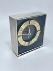 Hello, up for your consideration is a rare vintage atomic space-age Swiza alarm clock. Made in Switzerland, ca.1970’s. Rectangular clock with interesting 3D Dial and hands. Modern design from circa 1970's. All metal chrome plated brass with brushed finish. The dial in black background and matt gold ring with chrome and black hour markers and chrome hands. Mechanical 8 days movement, hand winding clock with alarm function. Marked on dial UTI Swiza Design, and on the back Swiss made. The clock was recently serviced and oiled by professional watchmaker. Keep time and running accurate. Cosmetically is excellent preserved vintage clock. This very much loved clock ti is thinking very quiet and the alarm sound also can be called soft. Much comfortable clock for any bedroom. Please, be sure to view all photos carefully as they are included as part of the item description. Measures: 3.95'' x 3.5'' x 1.25 Check my other auctions for wonderful antiques and collectibles! ========================== terms and conditions: All my items are as described, all authentic and original collectable items. They are described the best way I can. All questions will be answered on time depending on the time-zone differences. I ship only registered airmail worldwide with tracking number provided. Package will be securely wrapped to prevent any damage. If needed in double box. 100% refund guaranteed. Do not worry to contact me if you need assistance in any situation. Will do my best to satisfy my customers. Will combine shipping for multiple purchases. This item is shipped DDP (Delivery Duty Paid). All import duties and taxes have been prepaid - no additional charges on delivery to the buyer This item is shipped DDP (Delivery Duty Paid). All import duties and taxes have been prepaid - no additional charges on delivery to the buyer