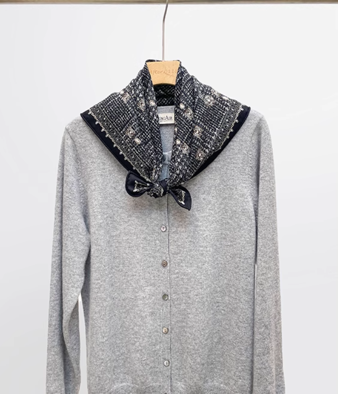 70% cashmere 30% silk ginkgo leaf double side printed square Wrap shawl 64X64cm