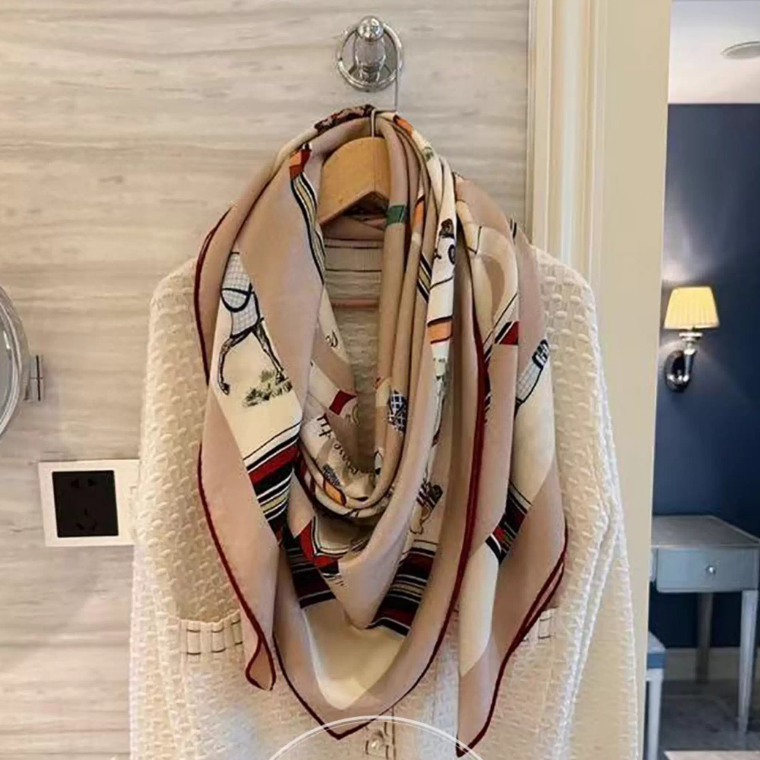 $ 52.870% cashmere 30% silk Pink grid double side printed square Wrap shawl 130X130cm