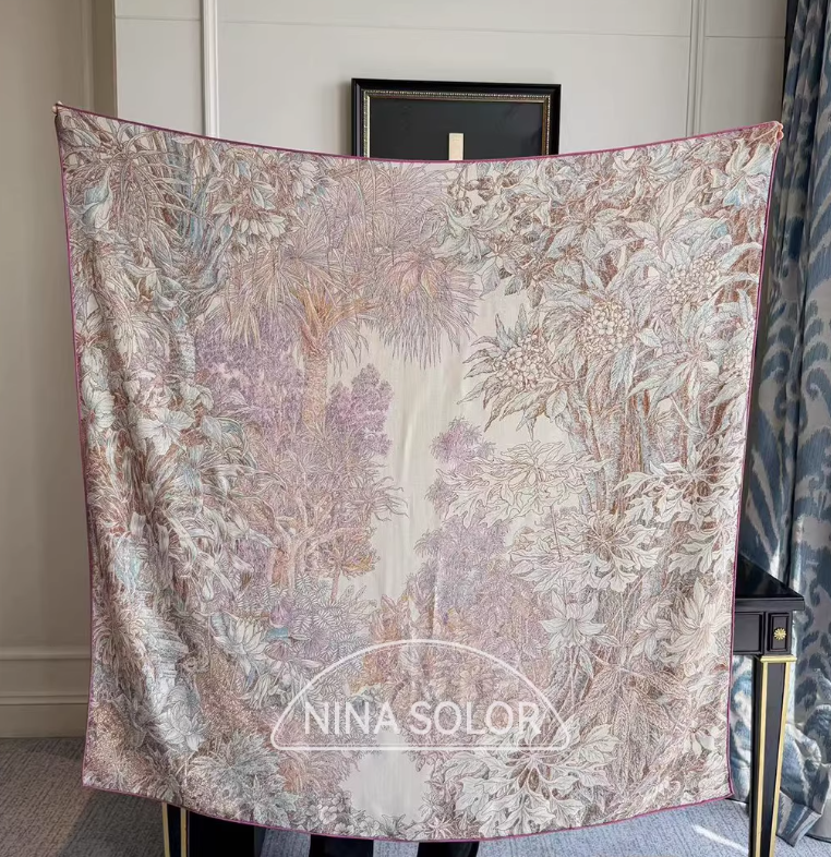 $ 187.070% cashmere 30% silk blue double-sided printed square wrap shawl 130x130cm