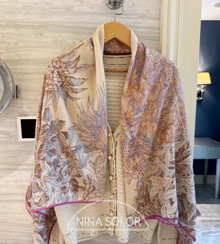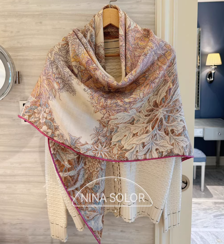 $ 173.8170% Cashmere 30% Silk Sunflower Double-Sided Square Wrap Shawl 130x130cm
