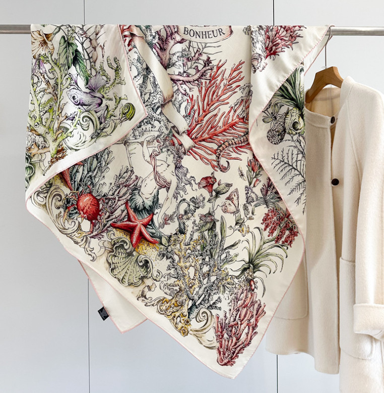 $ 9.51Tail Print Twill Silk 14 Momme Bandana Scarf Women Neckerchief Wrap Square 35''