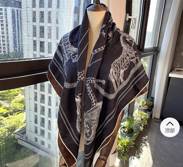 $ 28.5170% cashmere 30% silk Green Horse double side printed square Wrap shawl 51'' new