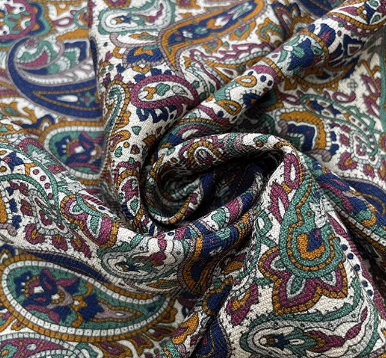Unusually vibrant earthy paisley design in two separate colorways both of which are perfect for fall. Makes quite a statement, particularly over a jacket. Thick, high-end jacquard twill. Packaged well, arrived quickly, at a fantastic price. Very good seller.