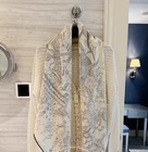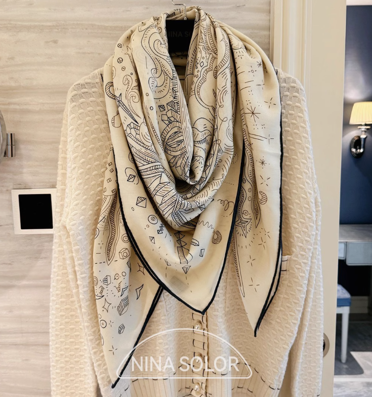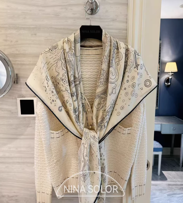 Versatile neckerchief print for adding some elegance and detail to a dark blouse or shirt. Quality jacquard twill with a great feel. Packaged well, great price, arrived quickly for overseas. Very good seller.