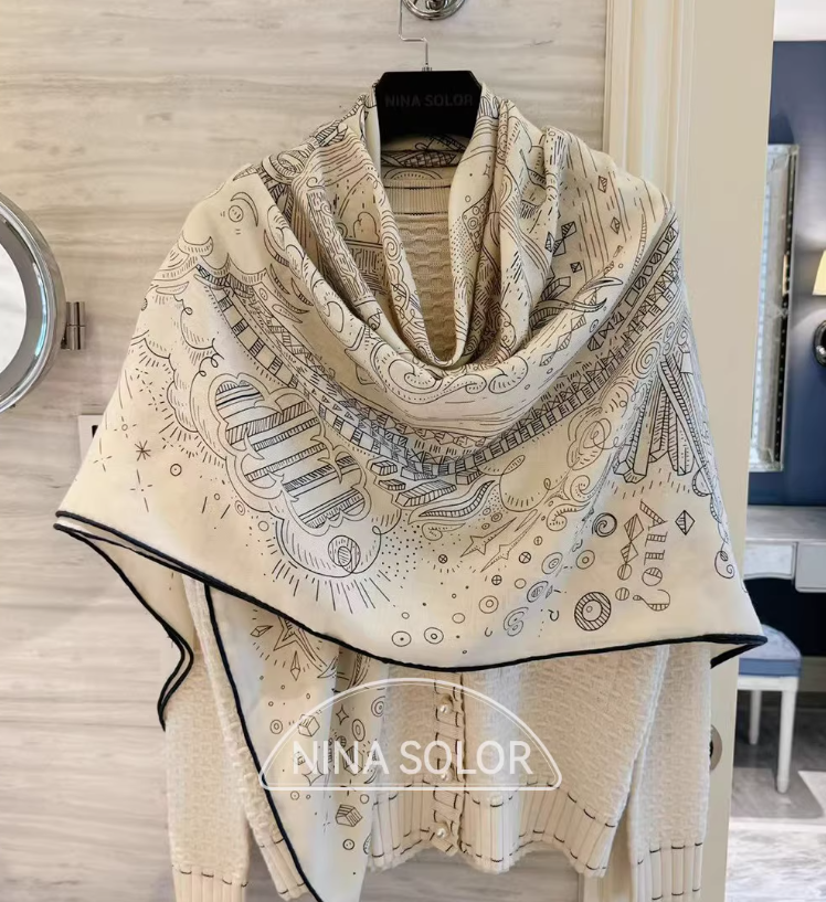 $ 52.870% cashmere 30% silk Iron block double side printed square Wrap shawl 130X130cm