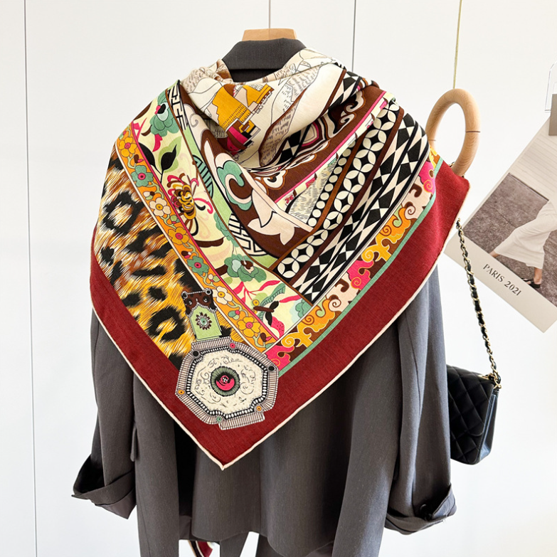 $ 30.9970% Cashmere 30% Silk Wrap Scarf warrior Print Double Face Shawl 135X135cm blue