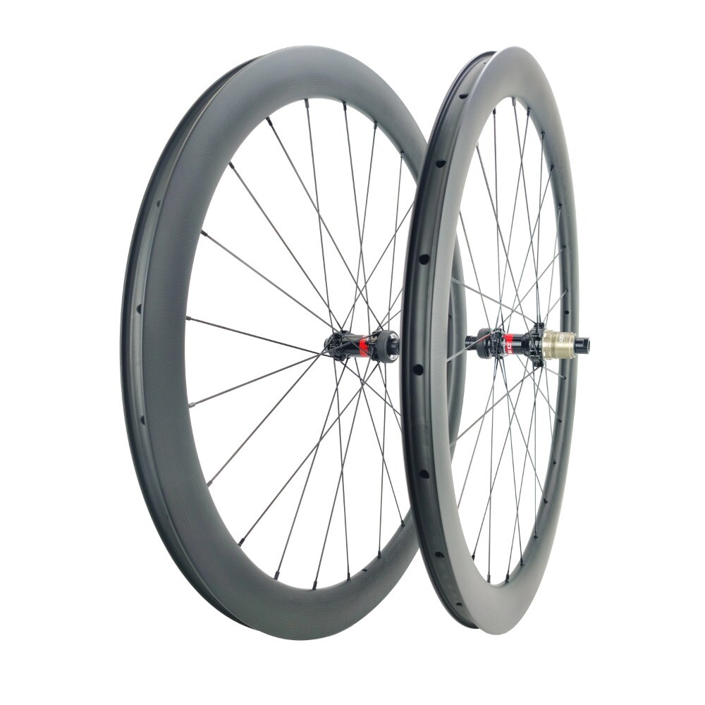 700C 30/35/40/45/50mm depth road disc brake carbon wheels 28 width Tubeless gravel bike carbon wheelset with special weave When you order, you will see "Leave a message for this seller" , you can write your request in the message. Description Rim U sed for Road disc brake bike Meterial T700 Toray Carbon Fiber Size 700C Type Tubeless Weave options Special weave Finish Matte Depth 45mm Brake track width 28mm Weight 470g Hole count 24/24H Hole type External ERD 549mm Hub Model name 411/412CL Sealed Bearlings Front:2 Rear:4 O.L.D Front:12*100mm Rear:12*142mm Compatible shima0 10/11speed or XDR 12 speed Color Black Weight Front:91g Rear:232g Spoke Pattern Front -------------------- radial Rear drive side -------------------- 2X cross Rear non drive side --------------- radial Shape Pillar 1432 Color Black Nipple Meterial DSN alloy nipples Color Black Brake surface Meterial non Width Paramete Max tire pressure 125 psi Max ride weight 120kg/240lb Quick releases color Black/ Red Including items Front and rear wheelsets,quick releases and gifts (Note:thru axle hubs without skewers,tubeless without rim tape) Warranty 2 years Product configuration Wheelsets Weight Tubeless wheelset Weight 30mm about 1470+/-30g 35mm about 1510+/-30g 40mm about 1550+/-30g 45mm about 1600+/-30g Tubular wheelset Weight 30mm about 1240+/-30g 35mm about 1270+/-30g 40mm about 1310+/-30g 45mm about 1370+/-30g upgraded 1420 spoke or sapim cx-ray spoke upgraded 1420 spoke Reduce 96g Upgraded sapim cx-ray spoke Reduce 96g Upgraded light weight rims Reduce about 100g NOTE: If you decide to purchase, please choose from the following order spec template and tell us. Hub Compatibility: Shima0 11 Speed or XDR 12 speed Nipples Color: Black or Red Color Hub thru axle options : Front:9mm x 100 (standard quick release skewers) 12mm x 100 (Thru axle) 15mm x 100 (Thru axle) Rear: 10mm x 135 ( standard quick release skewers) 12mm x 142 (Thru axle) Details picture Hub option Rims section drawing Tubeless Tubular