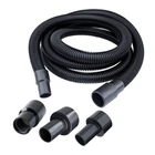 Introducing the Dust Collection Hose & Fittings Set by . This 10-feet long hose, fittings, and adapters combo was designed to provide you with a longer and more flexible reach for your dust collection needs. Whether you’re using a workshop vacuum for clean up or dependent on using of your capable power tools keep your work area clean by simply attachingThis super effective hose to the dust collection port and say goodbye to troublesome sawdust, dirt and debris. with most vacuums that come with a 2-1/4” ID, 2-1/2" ID or 1-1/2" OD ports, as well as the power tools that come with 1" OD dust extraction port like Orbital Sander, Table Saw, Jointers, Compact Router & more! Premium Quality Long and lightweight,This dust collection hose features a spiral corrugation which not only extends your actual vacuuming distance, but attributes to the decrease in noise compared to other hose types. Its unique design allows it to be quickly coiled up for easy storage. Each part is made out of premium plastic that features optimum durability for long term use and is highly flexible for free roaming, uninhibited dust collecting. Includes 1 dust collector hose 1-3/16” O.D x 10ft long 1 ABS vacuum dust hose adapter 2-1/2" O.D 1 ABS vacuum dust hose adapter 2-1/4" O.D 1 small pliable plastic fitting 1" I.D 1 large pliable plastic fitting 1-1/2" I.D. is a leading manufacturer of high quality woodworking tools and accessories, machines, and an assortment of OEM parts. We are committed to exceeding expectations, while bringing the latest innovations, technology, and product development to the industry. Please note: The inner diameter and outer diameter on the plastic end fittings and hose are approximate sizes and results may vary slightly. PLEASE NOTE: The hose is designed to be small and flexible to help provide greater ease in sanding, planing, or other handheld power tool applications. The smaller diameter hose, good for this application, may not work for general vacuuming. If you plan to repurpose the kit, please refer to the detailed images to verify that the size and configuration fits your application or expectations PLEASE NOTE: This hose set is designed to provide dust collection for tools with 1” OD and 1-1/2” OD dust ports that connect to a dust collector with a 2-1/4” ID or 2-1/2” ID port. The hose features screw on adapters that can be changed to fit the required size. reducers are provided, 2-1/4”OD and 2-1/2” OD, to fit either size dust collecting system. INCLUDES: () 1-3/16" OD (1" ID) x 10ft dust collection hose, () 1" pliable plastic hose fitting, () 1-1/2" pliable plastic hose fitting, () 2-1/4" ABS dust hose reducer, () 2-1/2" ABS dust hose reducer, and () 1-1/2" pliable plastic hose fitting APPLICATION: To provide dust collection for tools with 1” OD and 1-1/2” OD dust ports that connect to a dust collector or vacuums with a 2-1/4” ID or 2-1/2” ID port VERSATILE: Offers a dust collection power tool hose with fittings that work with most small vacuums, dust collection systems, orbital sanders, joiners, jigs and other power tools. The nominal 2-1/4” adapter should fit most vac ports with a nominal ID of 2-1/4”. PLEASE NOTE: vac ports sizes can vary between different manufacturers. Please refer to the actual adapter sizes before ordering, to verify that it will work for your application QUALITY COMPONENT: This hose adapter is made with premium ABS plastic for durability, and designed to withstand the wear and tear commonly associated with dust collection systems for woodworking