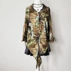Vintage 70s Tropical Leaf Print Blouse Size 1X Tie Monstera Botanical Green Boho Vintage 70s leaf print blouse in size 1X. - Tropical monstera leaf and palm frond pattern in earthy green and brown tones - Button down with tie front hem - Collared neck, 3/4 sleeves with slits and ties - No material tags, feels like a poly blend - From the 70s. Minor wear, overall great vintage condition! Such a cute boho blouse with a retro cottagecore botanical vibe, perfect for spring and summer! lay flat measurements: chest: 22.5" • length: 22" (to hem) • sleeve length: 21.5" brand: rag