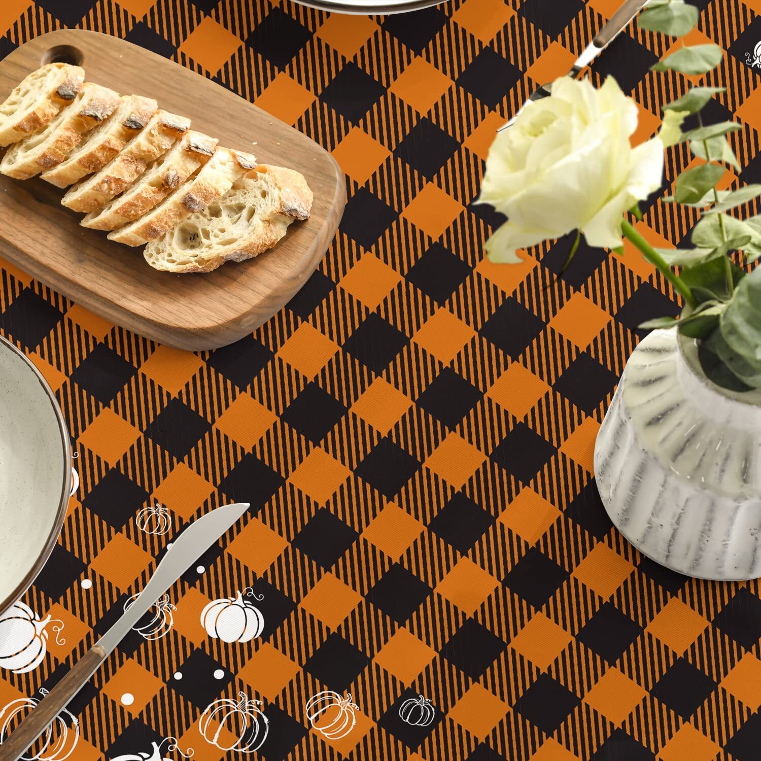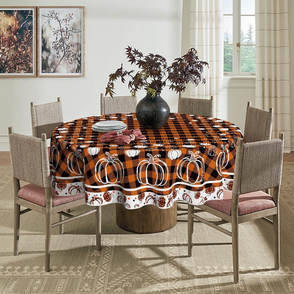 Love this tablecloth—perfect for fall gatherings! The rich colors and sturdy polyester fabric make it both stylish and durable. It protects my table while adding a festive touch, and cleanup is a breeze—just toss it in the wash. Fits my 48-inch table beautifully, creating a cozy atmosphere for meals. Great quality for the price!