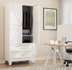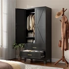 Cofar's vision to "Create a Stylish Space" positions us at the forefront of the global steel furniture industry. As an integrated group specializing in production, sales, and R&D, we are committed to continuous innovation in steel furniture, providing exceptional living experiences for consumers around the world. Our products are available in over 30 countries, making Cofar the preferred furniture brand for both families and businesses. Color: Black/Blue Adjustable Shelves: 1 Each Shelf Weight Capacity:120 lbs Product Dimensions: 15.75"D x 31.5"W x 71"H Rustic Farmhouse Design: The door panels of this metal wardrobe feature a charming farmhouse design, blending traditional elegance with modern practicality. The aesthetic appeal of the cabinet makes it both a functional and decorative piece Sturdy Metal Construction: Made of durable recyclable metal material with environmental powder coating surface, this wardrobe closet is built to last. The metal construction not only offers large load capacity but also makes it scratch and rust-resistant Versatile Storage Solutions: The wardrobe cabinet features a hanging rod for hanging clothes, one adjustable shelf below for customizable storage. This multi-tiered design offers versatile storage options to keep your space organized Convenient Drawers Design: The bedroom armoire includes two spacious drawers at the bottom, providing storage space for smaller items such as underwear, socks, or others. The smooth glide system ensures a hassle-free opening and closing Special Designs: The closet cabinet is designed with adjustable non-slip feet to adapting to uneven floor; magnets closures to make the doors closed tightly; golden handles for easy catch to open doors and anti-tipping device at the back for safety