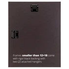 Traditional style; black; wood grain finish Frame includes: glass, rigid black backing and pre-attached stamped hanging hardware Frame holds a 11 inch by 17 inch photo/print (viewable area is slightly smaller) Frame moulding is .825 inch wide; solid wood Made in the U.S.A.
