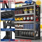 71"H Garage Shelving-5 Tier Garage Storage Shelves,Adjustable Heavy Duty Metal Product Description Say goodbye to wobbling shelves and weak joints. Our Garage Shelving features four one-piece steel columns, thick steel shelves reinforced with ribs, and extra-wide beams for superior durability and strength. It’s perfect for storing tires, generators, tools, and more. Adjustable shelf heights let you create the setup you need, while the quick, 10-minute installation makes organization effortless. About this item 【Heavy Duty Garage Shelving Load 8000LBS 】Designed to handle even the toughest storage challenges. With a total weight capacity of 8000 lbs and 1600 lbs per shelf, this shelving unit is built to withstand heavy-duty use. Featuring one-piece columns, dual Reinforcing Diagonal Supports, reinforced Steel shelves with three support ribs, and extra-wide beams, it offers unparalleled strength and durability. 【One-Piece Columns with Diagonal Supports 】No seams, no weak spots. Our four one-piece columns, reinforced with diagonal supports, are the key to a sturdier, more reliable garage shelves. The seamless design, combined with the diagonal braces, eliminates wobbling and sagging, offering enhanced stability and durability for heavy-duty storage., unlike split column garage shelf that can suffer from weak joints and instability. 【Thick Steel Shelving with Reinforcement Rib】Our shelf’s thick steel shelves, reinforced with ribs and supported by extra-wide beams, provide unmatched durability for all your storage needs. The reinforced ribs help spread the weight evenly across each shelf, while the extra-wide beams ensure maximum load-bearing capacity, preventing any bending or sagging over time. 【Adjustable Metal Shelf】Our heavy duty shelving features adjustable shelves, allowing you to create the perfect storage system for your unique needs. Adjust the height of each shelf to fit everything from large appliances to smaller tools, and enjoy a customizable storage experience. Whether it’s for home or commercial use, this shelving unit is versatile and practical. 【Garage Shevleing with Monster Storage Space】This extra-wide garage shelving is perfect for garages, warehouses, basements, and shops. It’s not just for home use – this shelving unit is also ideal for industrial and commercial applications. Perfect for storing heavy-duty items like tires, generators, and motor oil crates, it's built for mechanics, warehouse professionals, and anyone who needs reliable, heavy-duty storage. 【10-Minute Solo Assembly】We’ve simplified assembly with a comprehensive installation guide and clearly labeled parts for each step. And if you run into any issues, our professional customer service is always ready to offer guidance and support, ensuring a flawless experience. Product Sizes 1PCS --- 5 Tier - 63" W x 24" D x 71" H
