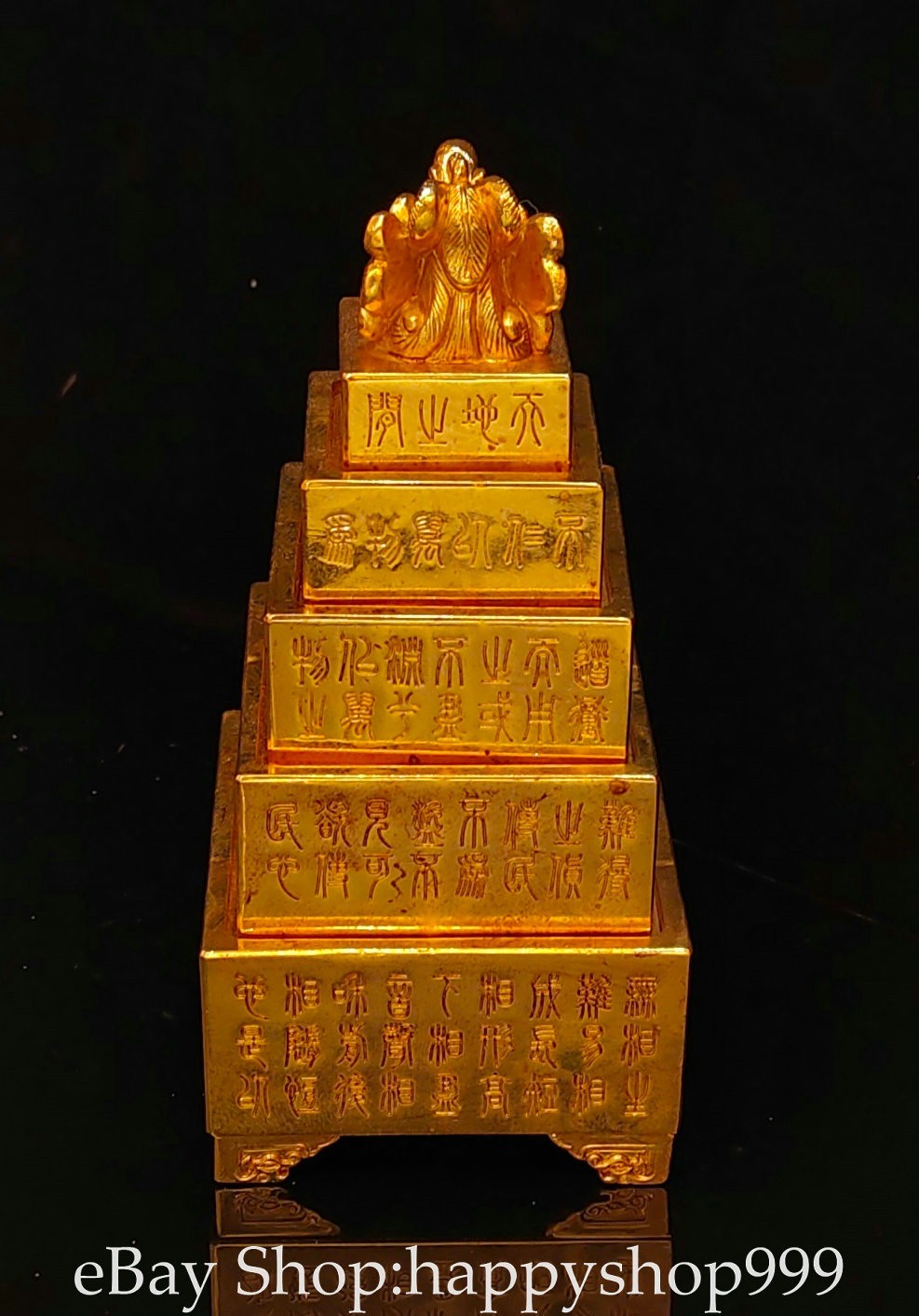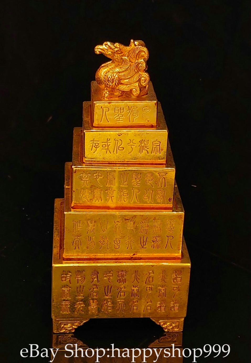 7.2" Chinese Bronze 24K Gilt Gold Phoenix inscription Seal Stamp Signet Set You are bidding for a 7.2" Chinese Bronze 24K Gilt Gold Phoenix inscription Seal Stamp Signet Set . It is in good condition without broken or fixing as photos showing and rare style from antique market. This is a great piece of valuable collection, a valuable personal alter or a very good present. the handwork is very fine with incredible detailling. Don't miss out this chance to get it . All the items we are showing is only one available and You will get the same one as photos. Condition Material : Bronze 24K Gilt Gold Origin : Chinese Style : Same as photos showing Size : High 7.2 Long 3.2 Breadth 3.2 (inch) Weight : 5.5 KG----included the weight of packing materials Shipping cost by EMS or SF express (5-12 days) : Free Shipping. Terms of Sale We recommend the combine shipping and wholesale order , If you won more items once that we will give you a 5-10% di7scount off the price. Also We encourage you to make an offer if you're interested. Each piece is a testament to traditional craftsmanship and will make a stunning addition to any collection or home decor. Our priority is to ensure your satisfaction. Feel free to reach out with any questions or for additional information. Thank you for considering our items. About us We are business in Asian Antique and old collectable items over 12 years. My father is running them from China, korea, Singapore,Japan and Nepal every year and hold many rare items in stock. They are inculding the diference style porcelian , Cloisonne , Bronze。 Pottery . Silver also jade carving from difference time period. We are looking towards to have the friends online for working each other and learning. Thank you. Contact Me If you're in any way dissatisfied with your purchase or any problem of your order condition , Please let me know through "MY MESSAGES" or "Ask Seller Questions" though eBay. We will quickly to answer and try best to resolve it well for your happy . We are committed to ensuring that you are completely satisfied with every transaction. 100% Satisfaction guaranteed ! We will reply your mail with in 24 hours normally. Thanks for looking! We believe you will enjoy with our other items too !