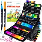 【72 VIBRANT COLORS】Each set Includes 72 primary and complementary colors, NO duplicate. You'll never run out of possibilities or color options with this deluxe coloring markers set. Just blend beautifully for added dimension to your artwork, and create one you never have before. 【CONVENIENT, STURDY DUAL TIPS】With 2 different tips to choose from, you have an infinitely wider array of coloring styles at your disposal! BRUSH for sweeping strokes and blending, FINE POINT for intricate details like sketching and writing. 【SMOOTH, NONTOXIC INK】Nicecho dual brush marker set come with high-quality water-based ink that flows smoothly. The ink's vibrant colors seamlessly blend, providing beautiful and consistent coloring effects without smudges. 【PORTABLE & DURABLE BAG】Our dual tip pens comes with a durable carrying case which have pen slots to organize all your colors. If you know someone who's artistically inclined in your life, this is a thoughtful gift that will keep on giving. 【MULTIFUNCTIONAL & SUITABLE FOR ALL AGES】Ideal for various artistic pursuits such as drawing, lettering, coloring books, and sketching. Perfect art suppliers for all ages, making it an excellent gift for artists, students, and creative enthusiasts.