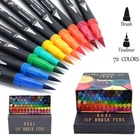 72 Colors Dual Tip Brush Pens Highlighter 72 Art Markers 0.4mm Fine liners & Brush Tip Watercolor Pen Set for Adult and kids Coloring Books, Calligraphy, Hand Lettering, Note Taking COLORS AND FUNCTION:72 vibrant colors including all the primary colors that artists need for drawing lines & details, painting, sketching, highlighting, journaling, signing, illustration, doodling, hand lettering, shading, rendering, manga and more. Ideal for professional fine art, adult coloring book and crafts. DUAL TIP DESIGN:0.4 mm fine tip for detailed outlining and fine lines, 1-2 mm nylon fiber brush tip for shading and coloring. Artists love to use GC Quill dual tipped marker pen because of its accurate line control, superior color blending and the flexibility of a smooth pen stroke. Clean thick or thin lines can be achieved with ease. HIGH QUALITY ARTISTS BUSH PENS: Marker pens are made of strong pigments allowing you to draw at least 300 meters. Loved worldwide by hobbyists, art lovers, fans of adult coloring books etc. Now your work will be suitable for framing. ACID FREE, NON-TOXIC AND ODORLESS: Water-based non-toxic liquid markers with fiber tips can last long time use. The ink is Acid-Free & Non-Toxic and Conforms to ASTM D-4236.