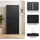 72" Fluted Kitchen Pantry Cabinet W 3 Keyboard Drawers 6 Door Shelves Adjustable