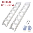 About this item 【 High Weight Capacity 】With a weight capacity of 8810 pounds , this loading ramp easily meets the transportation needs of various vehicles, including tractors, ATVs, UTVs, motorcycles, off-road vehicles, cars, and trucks. 【 Lightweight and Durable 】Made of high-quality aluminum alloy, the lightweight and rust-resistant material provides excellent weather resistance and corrosion resistance, making it easy for one person to handle at only 57.3 pounds. 【 Enhanced Safety Features 】The truck ramp's stepped design increases friction, the extended plate and adjustable load straps securely lock the ramp in place, eliminating the risk of tipping or sliding during use. 【 Professional Quality 】The vehicle ramp is professionally welded, durable, and features a smooth surface with no sharp edges to ensure user safety. Additionally, gloves are provided to protect hands from injury and dirt. 【 Reliable and Versatile 】The atv ramp set includes two aluminum trailer ramps, each 72 inches long and 15 inches wide , with a heavy-duty aluminum structure that ensures years of reliable and versatile vehicle loading. Payment Delivery Returns Feedback We accept Payoneer only. All major credit cards are accepted through secure payment processor PayPal. Payment must be received within 7 business days of auction closing. If you have bought multiple items from me, you can send me one payment for all the items instead of paying for them individually. When you click the Pay Now button, eBay will automatically determine if there are other items you have won or purchased from me and will combine them for your review. NOTE: Import duties, taxes and chargers are not included in the item price or shipping charges. These charges are the buyer's responsibility. Please check with your country's customs office to determine what these additional costs will be prior to bidding buying. 1. We will delivery out at the handing time when we receive the payment. 2. The delivery time is 3-5 business days to US by usually time.The parcel maybe delay 1-2day of the weekend.Due to the bad weather,Holidays,Hot Season ect.the parcel maybe delay,If you have any problems,mssage us,we will try our best to solve it. 3. We ship to your eBay address. Please make sure your eBay address is correct before you pay. 4. If you want to change the shipping address,message us before our send out. 5. We cannot deliver your order if your state is PR. 1. If you donot receive the items at the delivery time,the parcel has broken/missing,Please message us before you open case/return,we will try our best to solve it. 2. We offer a 30 day return policy from checkout winning date. 3. An RMA number is required for all returns. Message us for return instructions. Items Returned without a RMA number will not be processed. 4. Items defective upon receipt must be packaged in their retail packaging as if new and returned with a detailed description of the problem. 5. Return shipping fees are not refundable.We reserve the right to decline any returns if the above guidelines are not followed. If you are not satisfied with the item for any reason, please do not quick to leave negative/neutral feedback even open request and case without any communication with us. We devote ourselves making EVERY CUSTOMER in 100% Satisfactory and resolve any problem. Thank you for your understanding and recognition,we are always leave positive feedback to all our customers. About Reply: All replies will be sent to your email box, if you do not get response within 24 hours (Sat. & Sun. excluded) please check your eBay My Messages in case that our emails will be filtered automatically by your settings.